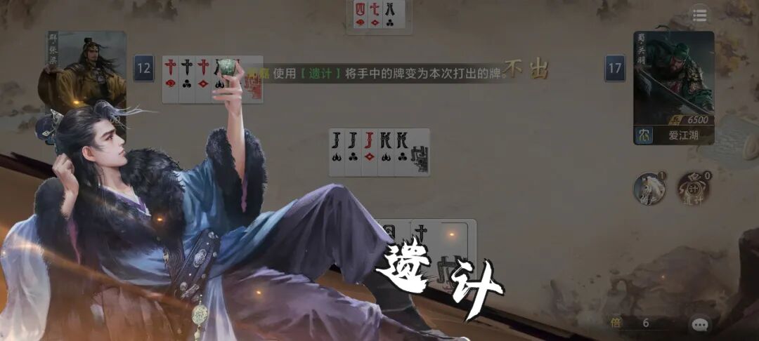 比如诸葛亮的角色定位就是“防反、变牌和牌权”,其技能「妙算」可在“叫分阶段提前看底牌”,「神机」则是“无牌可压时,可选手牌中一张≥K的牌,其随机变为手牌中数量最多的牌(变出的牌≤Q),然后跳过压牌,每局限三次”。